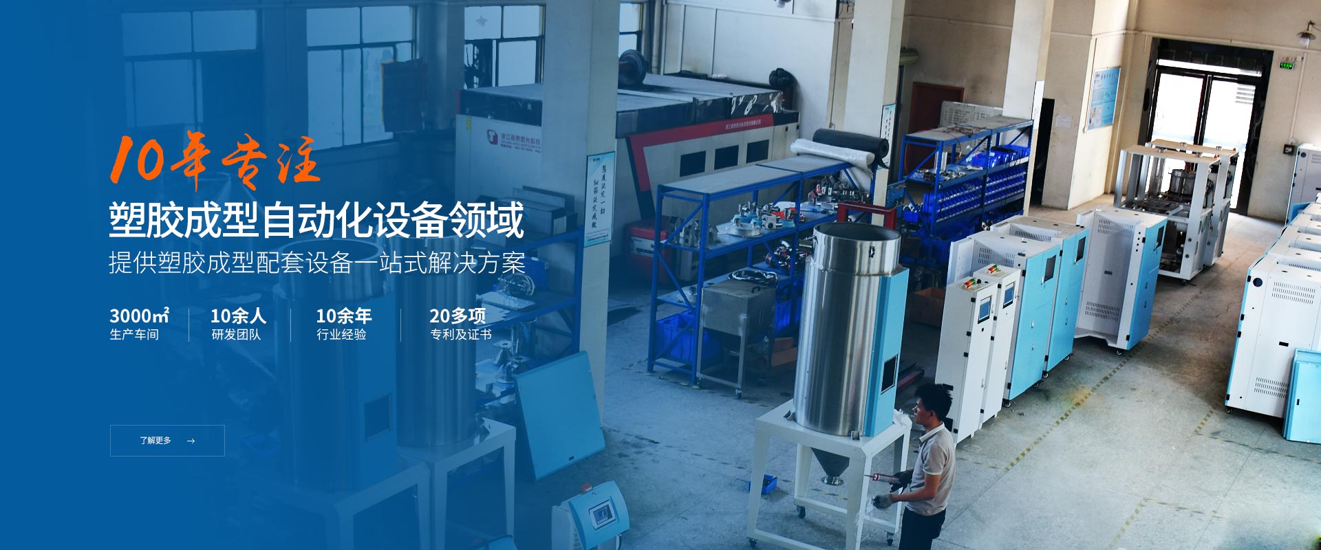 10余年專注塑膠成型自動化設備研發生產廠家提供塑機輔機研發、生產、安裝、調試一站式解決方案